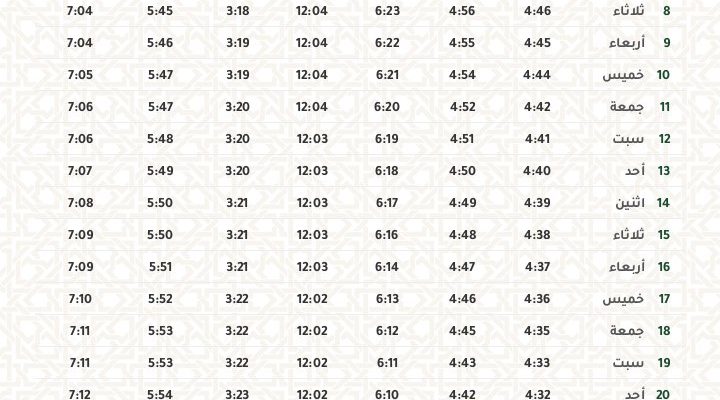 مقدمة: لماذا تهم امساكية رمضان تُعد امساكية رمضان أداة أساسية لكل مَن يصوم، إذ تحدد مواعيد السحور (الامتناع عن الأكل قبل الفجر) والإمساك، ومواقيت الإفطار عند غروب الشمس، إلى جانب مواقيت الصلوات اليومية. تكمن أهمية الامساكية ...