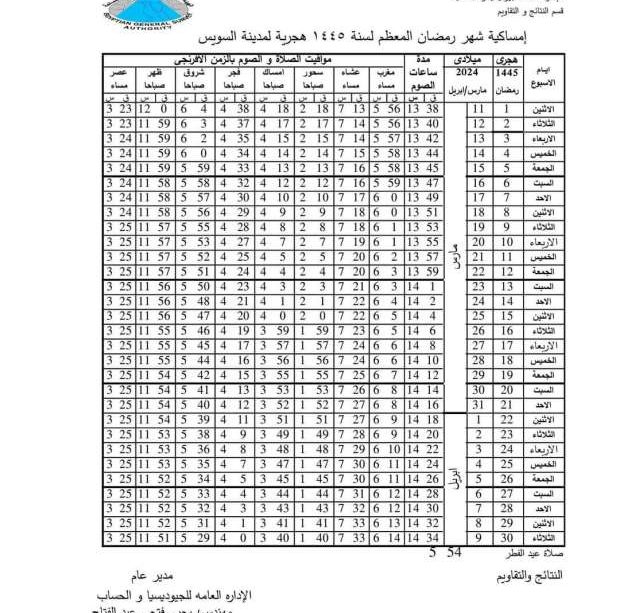 مصادر معرفة التوقيت في السويس