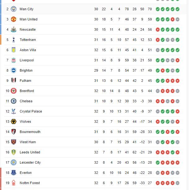مع اقتراب منتصف الموسم، تُظهر الترتيبات الحالية صراعًا مثيرًا على القمة. الفريق الأول في الترتيب هو مانشستر سيتي، والذي حقق أداءً رائعًا منذ بداية الموسم. يتبعه ليفربول وتشيلسي في المراكز الثانية والثالثة على التوالي. تشير الإحصائيات إلى أن فرق المقدمة تتنافس بشكل قوي على نقاط كل مباراة.