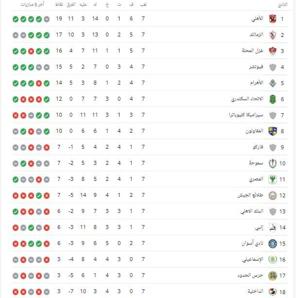 آخر تحديث على ترتيب الدورى المصرى