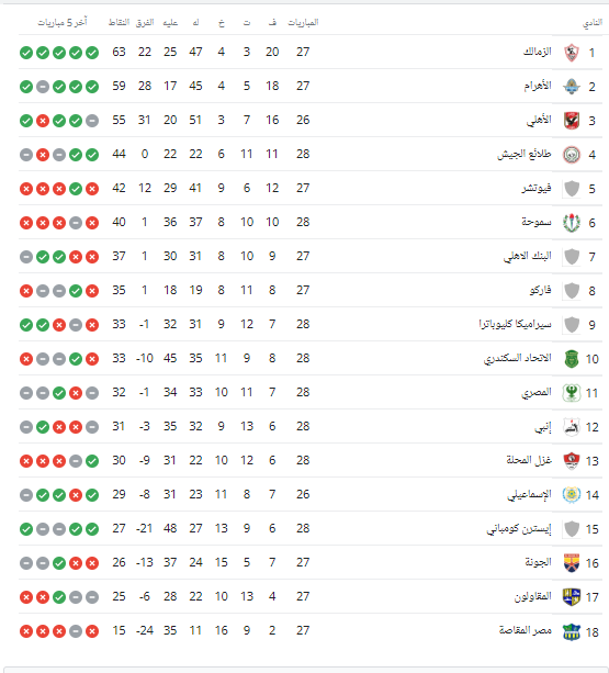جدول ترتيب الدوري المصري 2023: تحديثات وآخر الأخبار