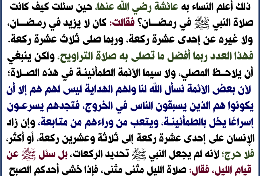 التفاصيل: ما المروي عن عدد ركعات التراويح؟