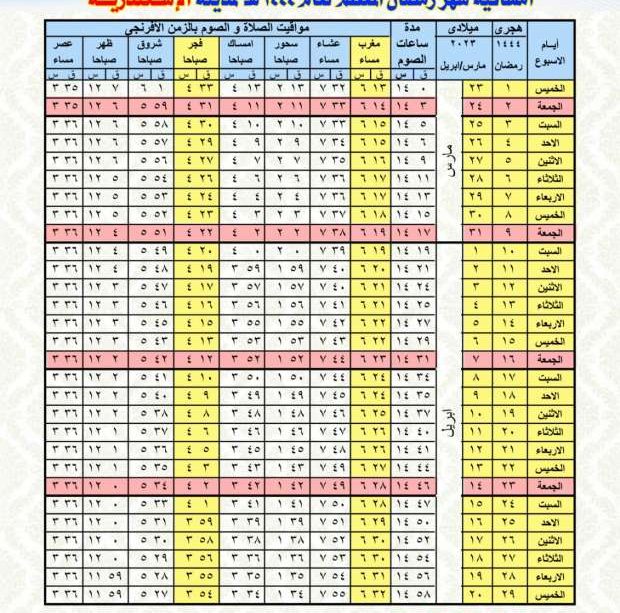 يجدر بالذكر أن هذه الأوقات قد تتغير قليلاً حسب الحالة الجوية أو التقديرات الفلكية.