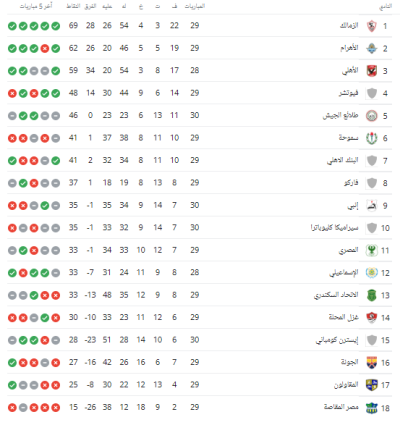 ترتيب الدوري المصري الان: تحديثات النتائج والمنافسة