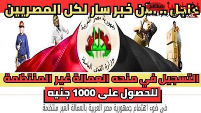 كيفية تسجيل العمالة الغير منتظمة للحصول على 1000 جنيه